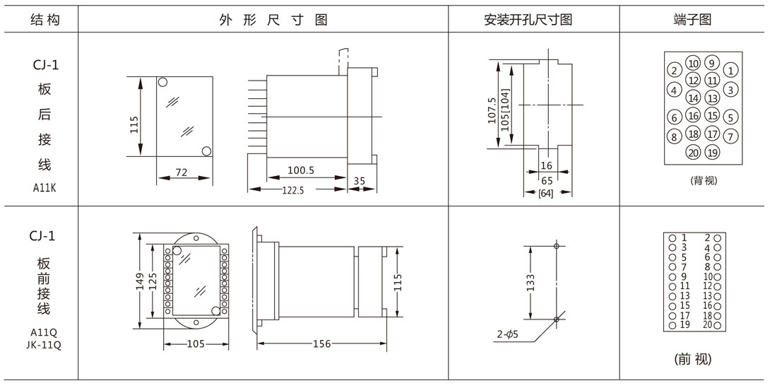 DY-37/Z電壓繼電器外形及開(kāi)孔尺寸