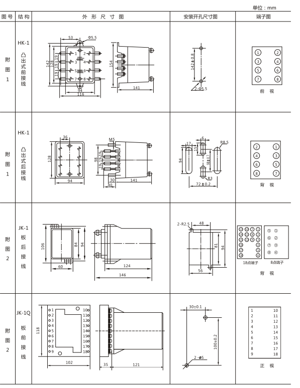 JY-ZC直流高低值電壓繼電器外形及開孔尺寸